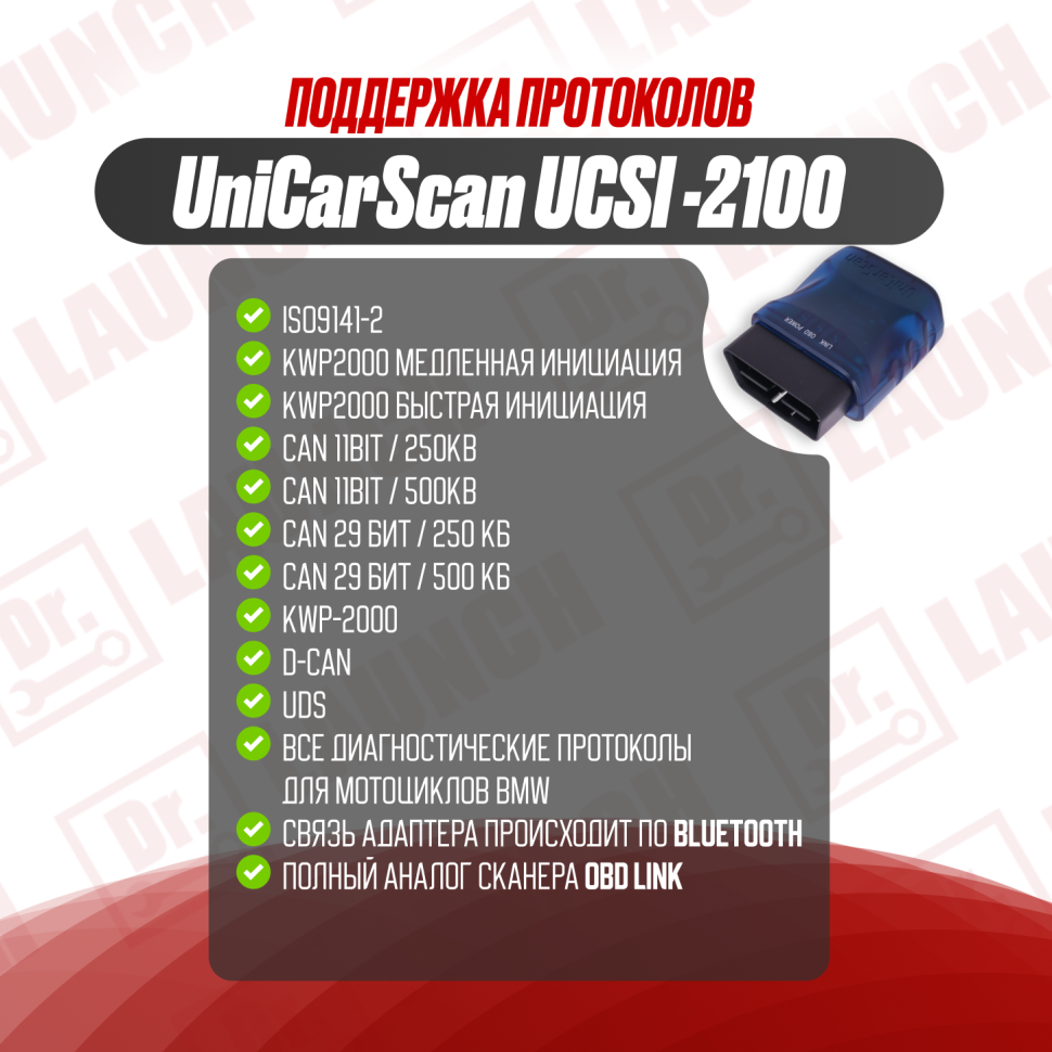 Unicarscan UCSI-2100 использует Bluetooth для подключения, обеспечивая надежную связь. Производитель заверяет, что устройство совместимо с сериями E, F, G, I автомобилей BMW, и поддерживает множество приложений, которые требуют ELM327.