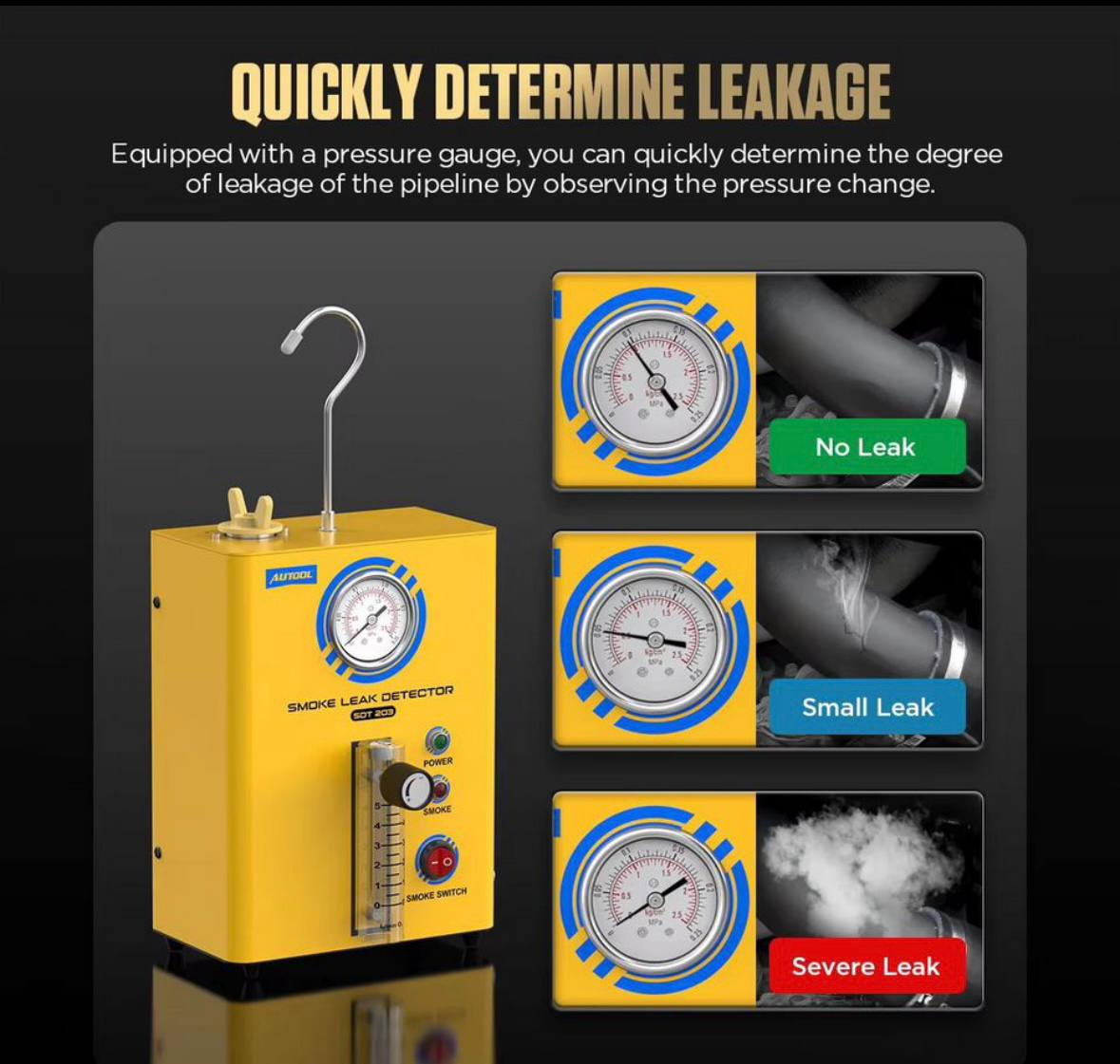 Автомобильный детектор утечки дыма Autool SDT203 предназначен для точной локализации нарушений герметичности в различных системах транспортных средств.