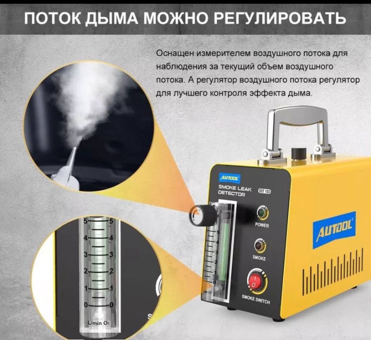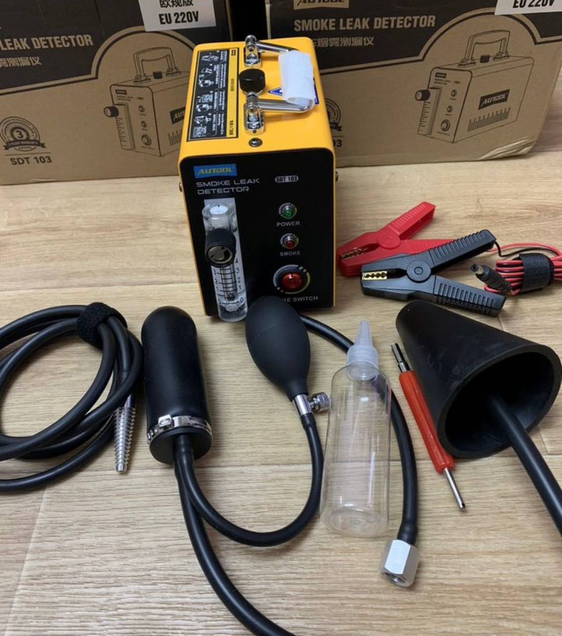 Мощный и простой в эксплуатации AUTOOL SDT 103 с помощью компрессора дымогенератор выводит много дыма в течении 30 секунд после включения.