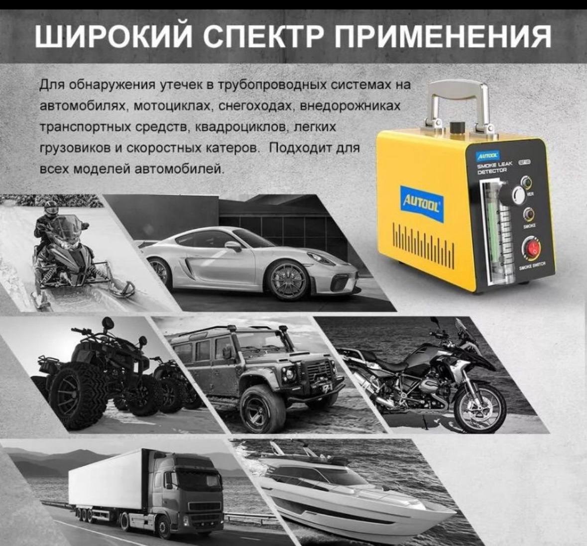 Дымогенераторы фирмы Autool — это зарекомендовавшее себя профессиональное решение, для качественной проверки различных узлов и систем автомобилей, мотоциклов а так же другой техники на герметичность и наличие утечек в различных трубопроводных системах.